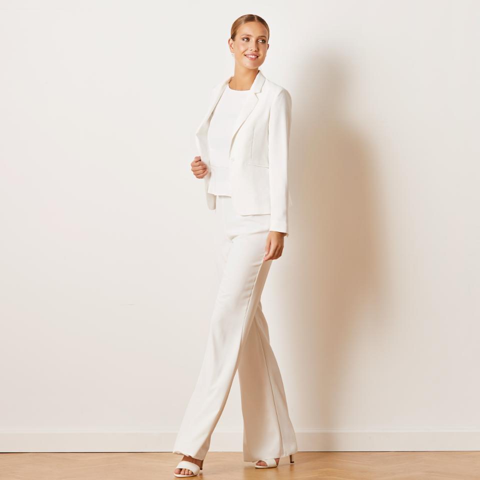 Not a girly girl? Our elegant combo of trousers and blazer in soft crêpe is the perfect wedding look for your big day - match with a lace top or clean-chic tone-in-tone top making your look both stylish and elegant, without compromising your personal style.